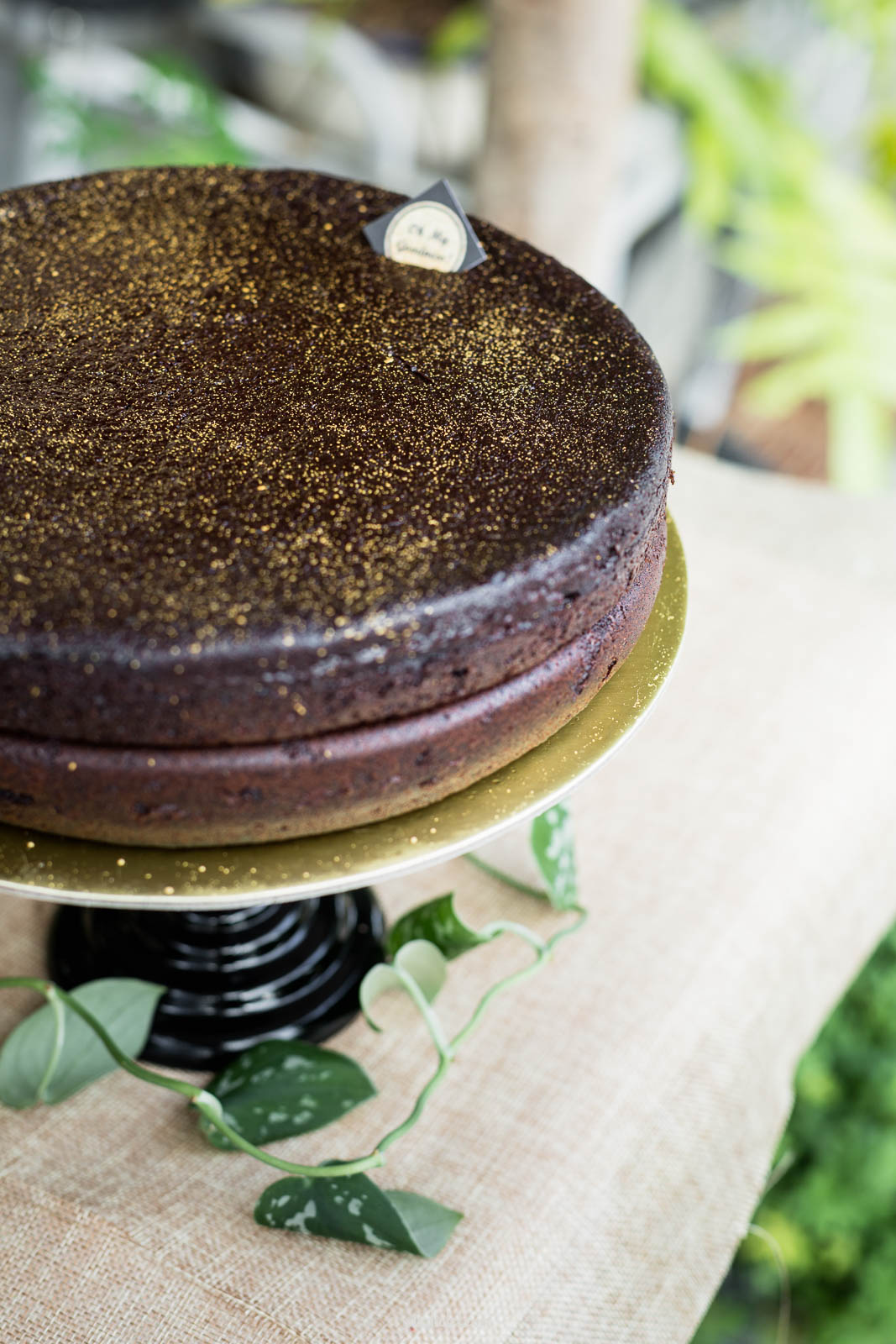Our signature dark chocolate cake but round for your special occasions, sprinkled with gold dust - simple, pure, naked. Perfect on its own or ready for frosting and/or decorating on your own!