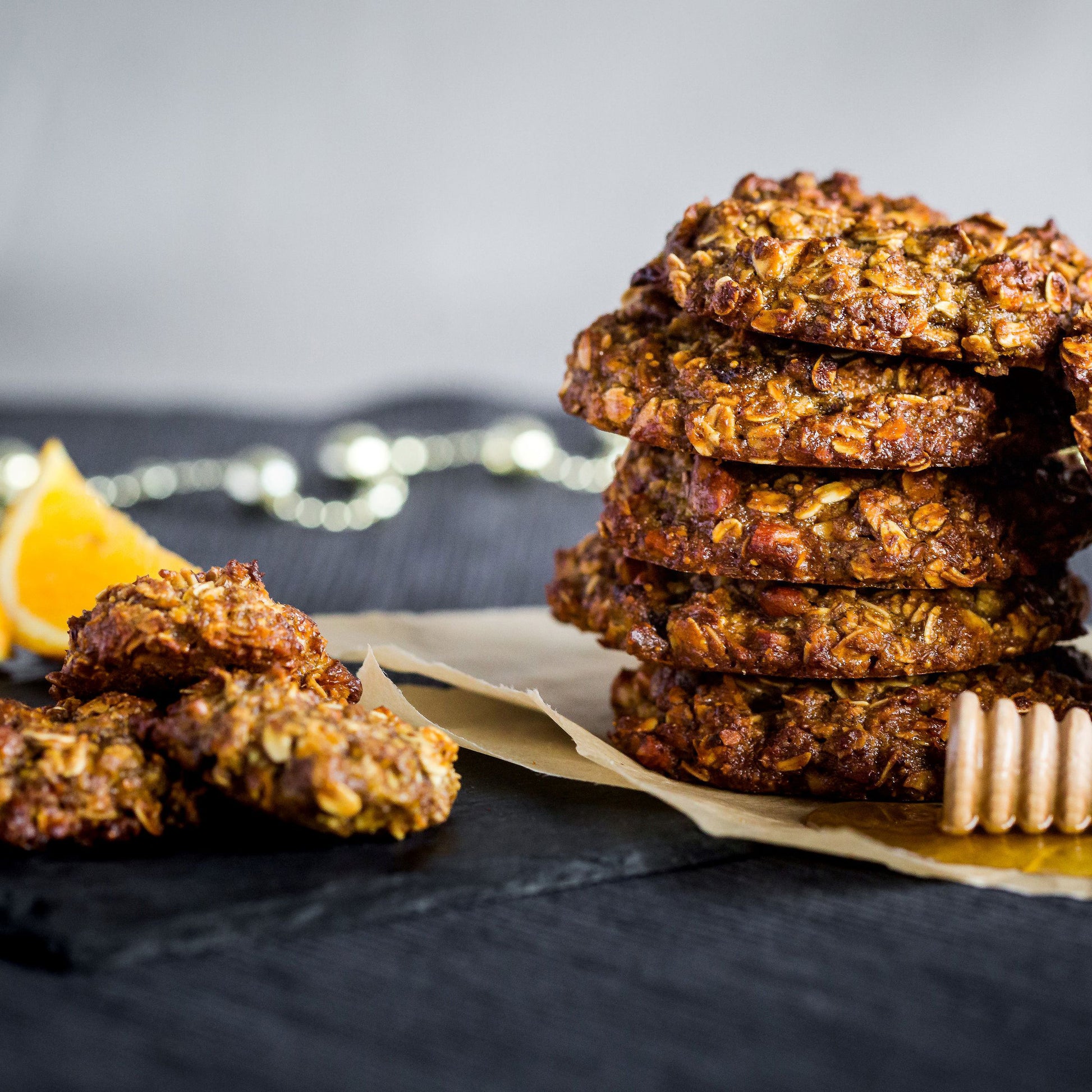 Oats, honey, eggs, almonds, flaxseed, figs, olive oil, orange, pink Himalayan salt, vanilla extract (propylene glycol; cobra vanilla beans extractives; water; glycerin), GF baking soda