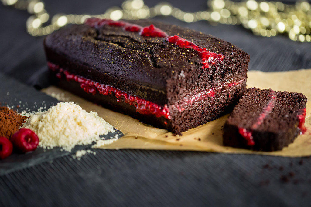 Our signature dark chocolate cake with a delicious twist - a luscious raspberry coulis layer in the middle.