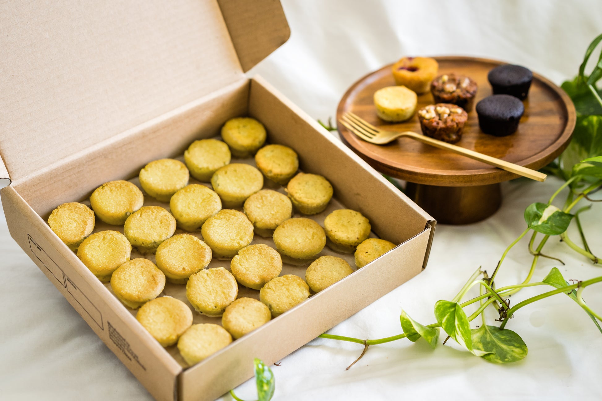 Our Sweet Treat Box contains 25 pieces of your favourite gluten-free, dairy-free cakes in canapé size (15-20g; bite-sized) in the flavours you know and love: